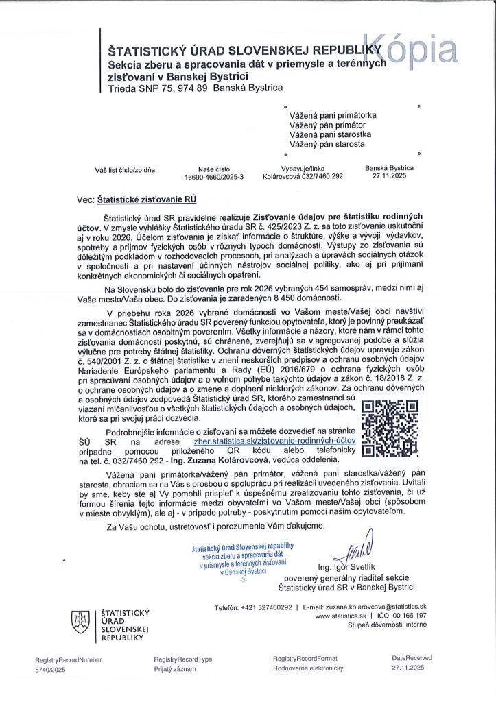 Zisťovania údajov pre štatistiku rodinných účtov 2026